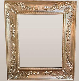 A sophisticated mirror frame carved from warm-toned wood with elegant leaf and flower motifs. The design features flowing vines and detailed embellishments, offering a luxurious, antique feel. A perfect accent for vanity spaces, hallways, or living rooms.