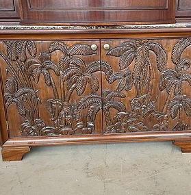 Bring the wild elegance of Africa into your space with this handcrafted mahogany sideboard. Intricately carved with palm trees, elephants, and tropical foliage, this piece tells a story of nature and tradition. Ideal as a buffet or entryway statement piece, it merges functional storage with fine art.